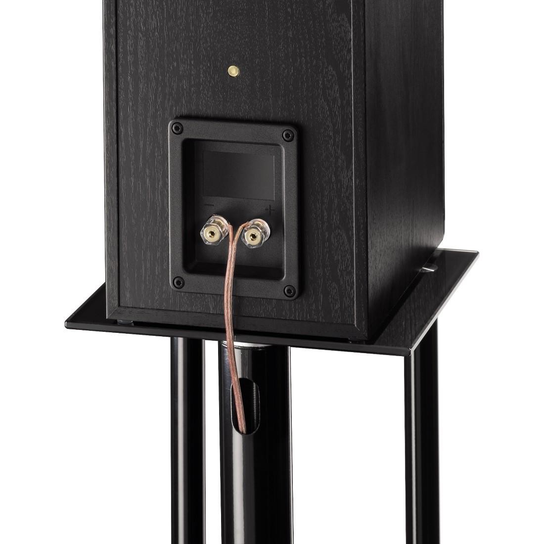 Отговор: Стойката е висока 80 см, идеална за поставяне на колоните на удобна ниво за слушане.