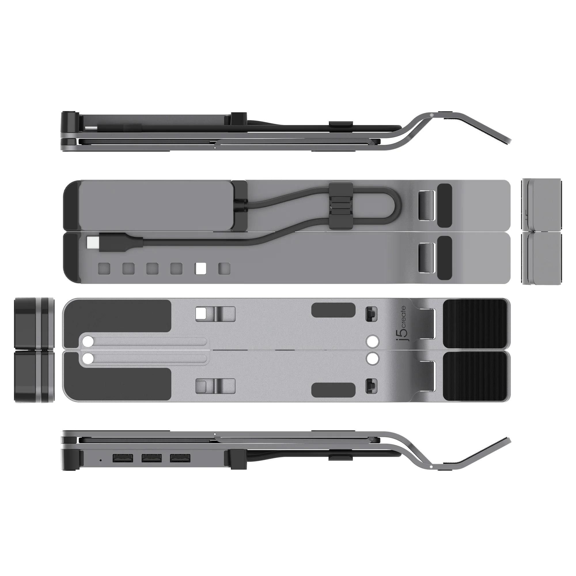 Поставката за лаптоп j5create JTS223 предлага 4 порта USB-A хъб и е изработена от алуминий, като съчетава стил и функционалност.