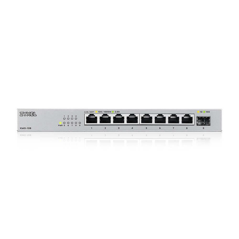 Продуктово описание: Суич ZyXEL XMG-108 е неуправляем 8-портов суич с възможност за 2,5Gb скорост на предаване на данни и 1xSFP+ порт.