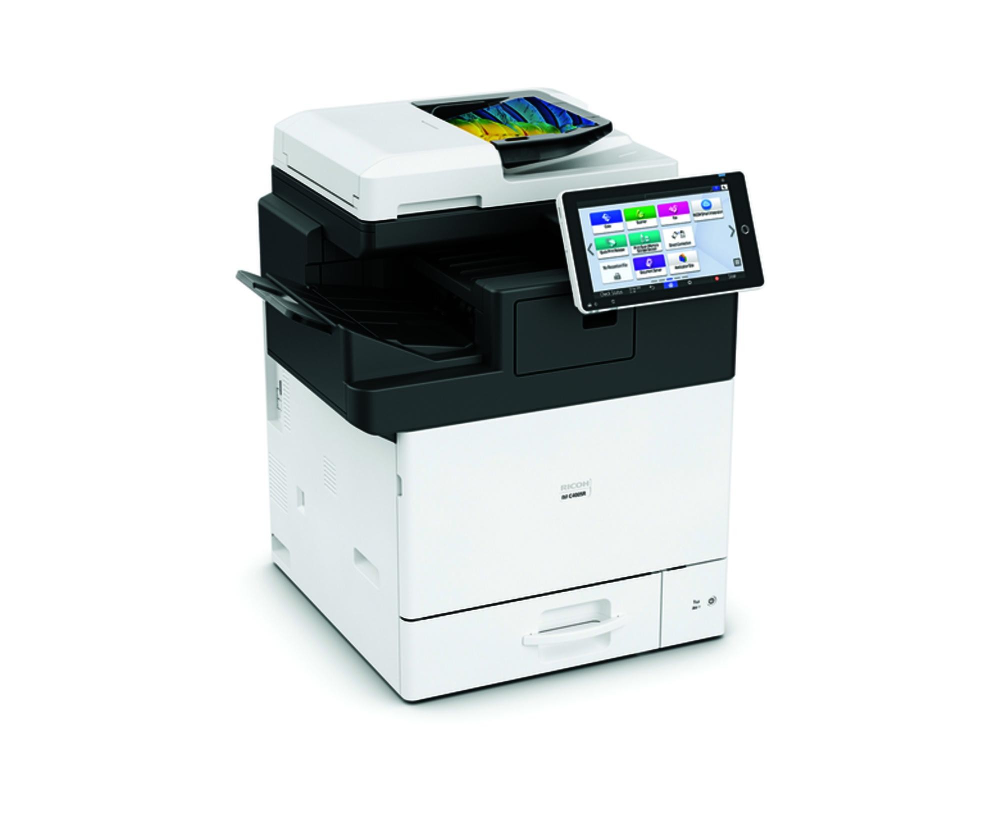 Мултифункционалното устройство на Ricoh IM C400F предлага висока скорост на печат до 43 страници в минута и резолюция от 1200dpi за ярки и детайлни изображения. С големия 10.1' дисплей ще можете лесно да управлявате устройството подходящо за работно място и домакинство.