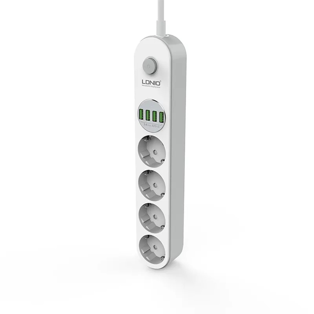 Power strip LDNIO SE4432, 4 sockets, CEE 7/3, 2500W, 4 x USB F, 2.0m, White