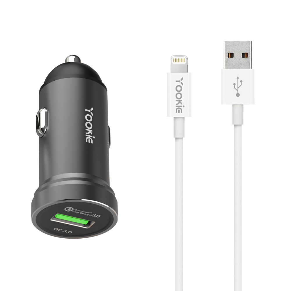 Зарядно за кола Yookie PC2, Quick Charge 3.0, With Lightning Cable, Different colors - 40138