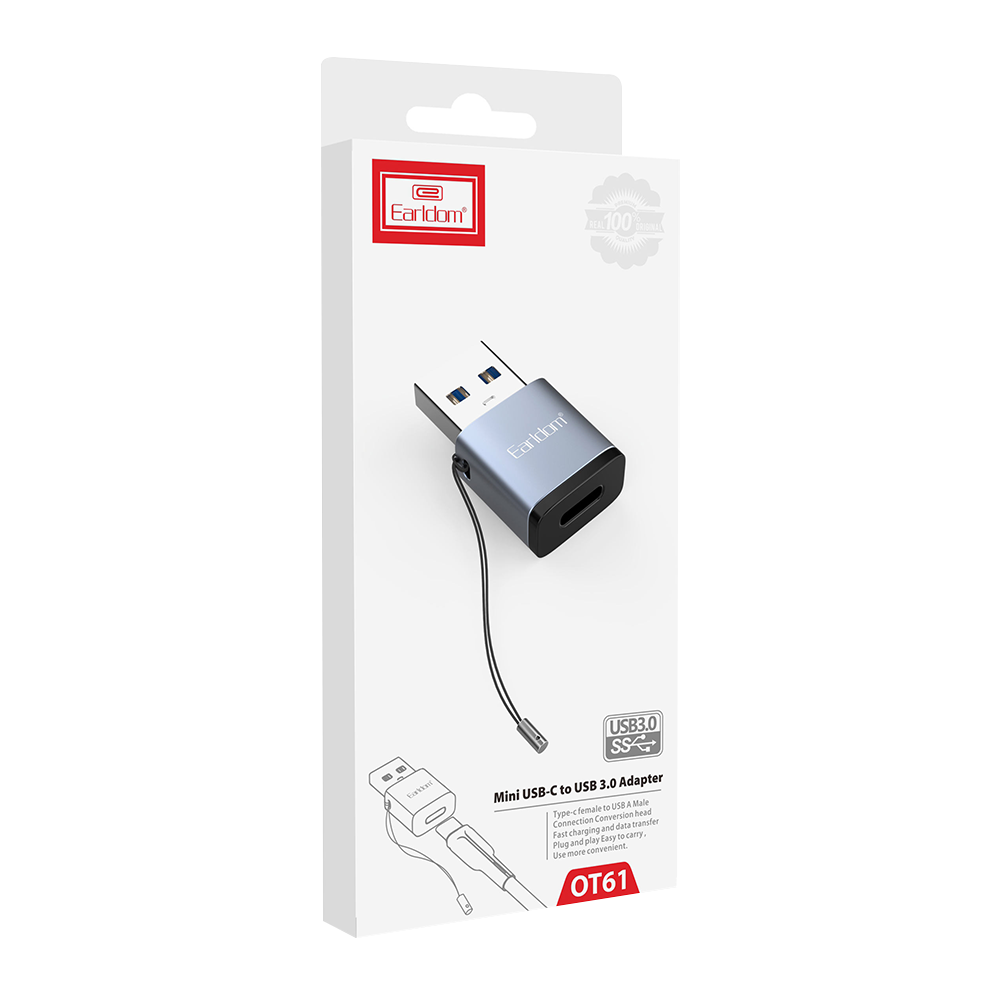 Адаптер Earldom ЕТ-OT61, Type-C F to USB 3.0, Gray - 40211