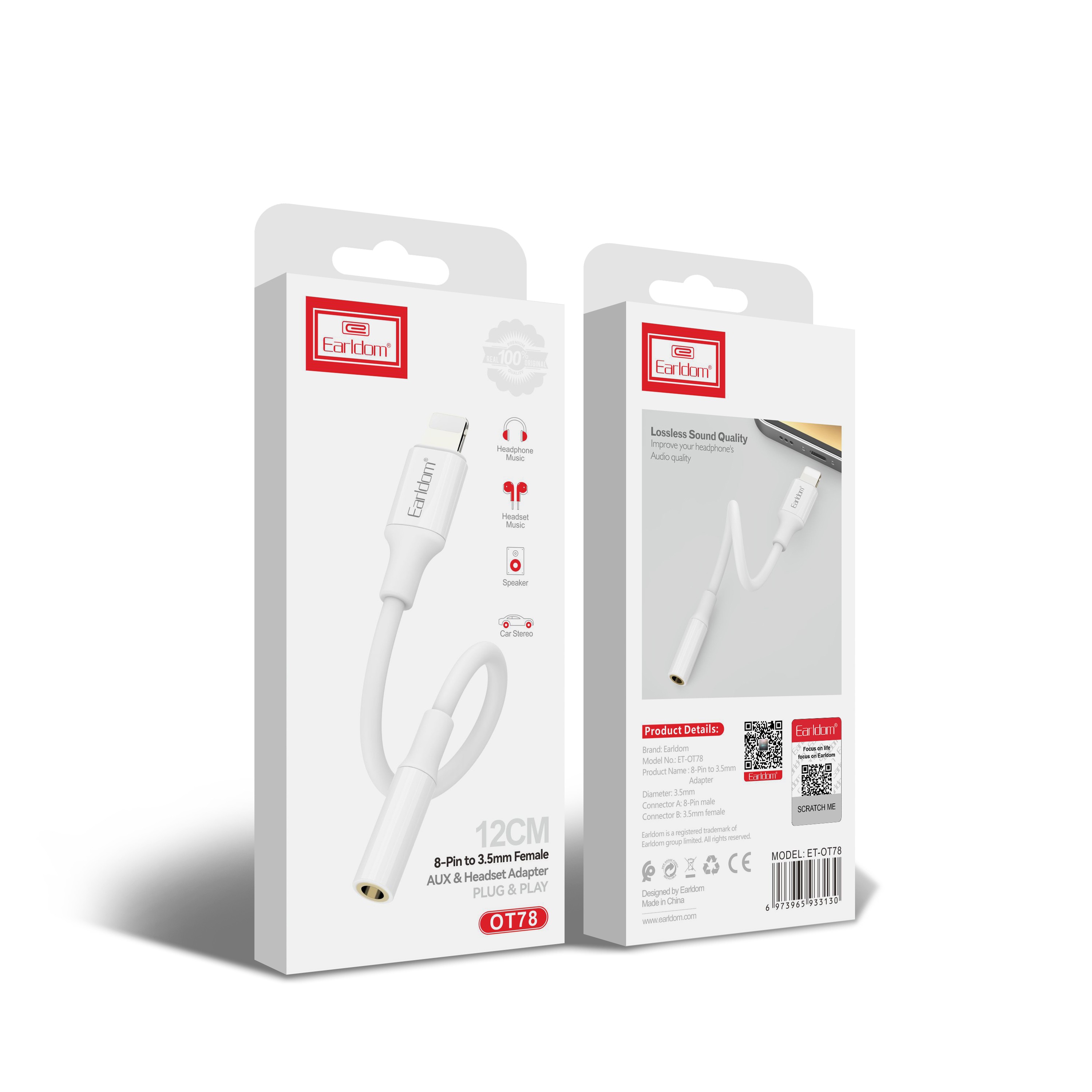 Адаптер Earldom ET-OT78, Lightning to 3.5mm (F), White - 40363
