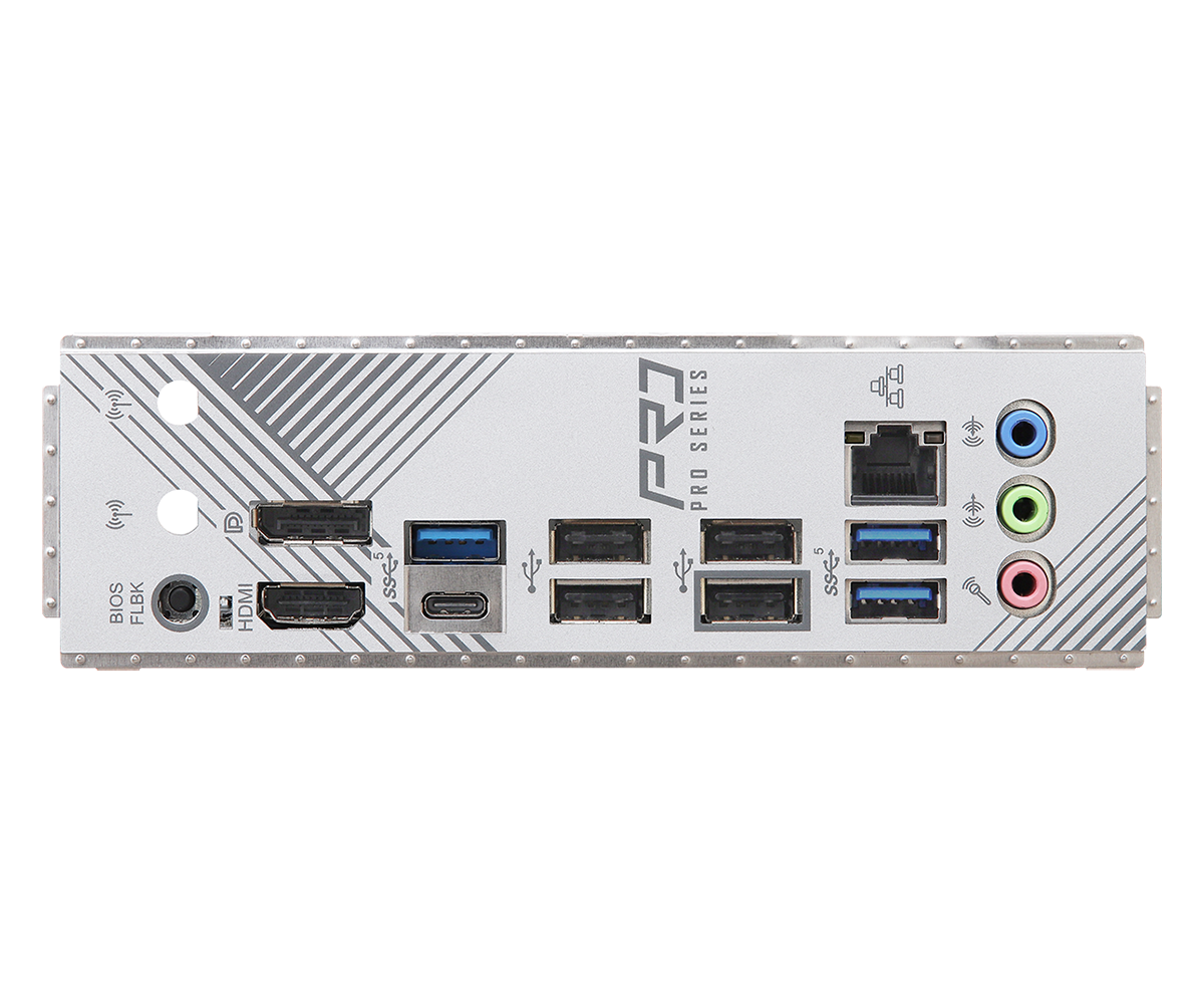 | I/o | - 2 x Antenna Mounting Points; - 1 x HDMI Port; - 1 x DisplayPort 1.4; - 3 x USB 3.2 Gen1 Type-A Ports; - 1 x USB 3.2 Gen1 Type-C Port; - 4 x USB 2.0 Ports; - 1 x RJ-45 LAN Port; - 1 x BIOS Flashback Button; - HD Audio Jacks: Line in / Front Speaker / Microphone |