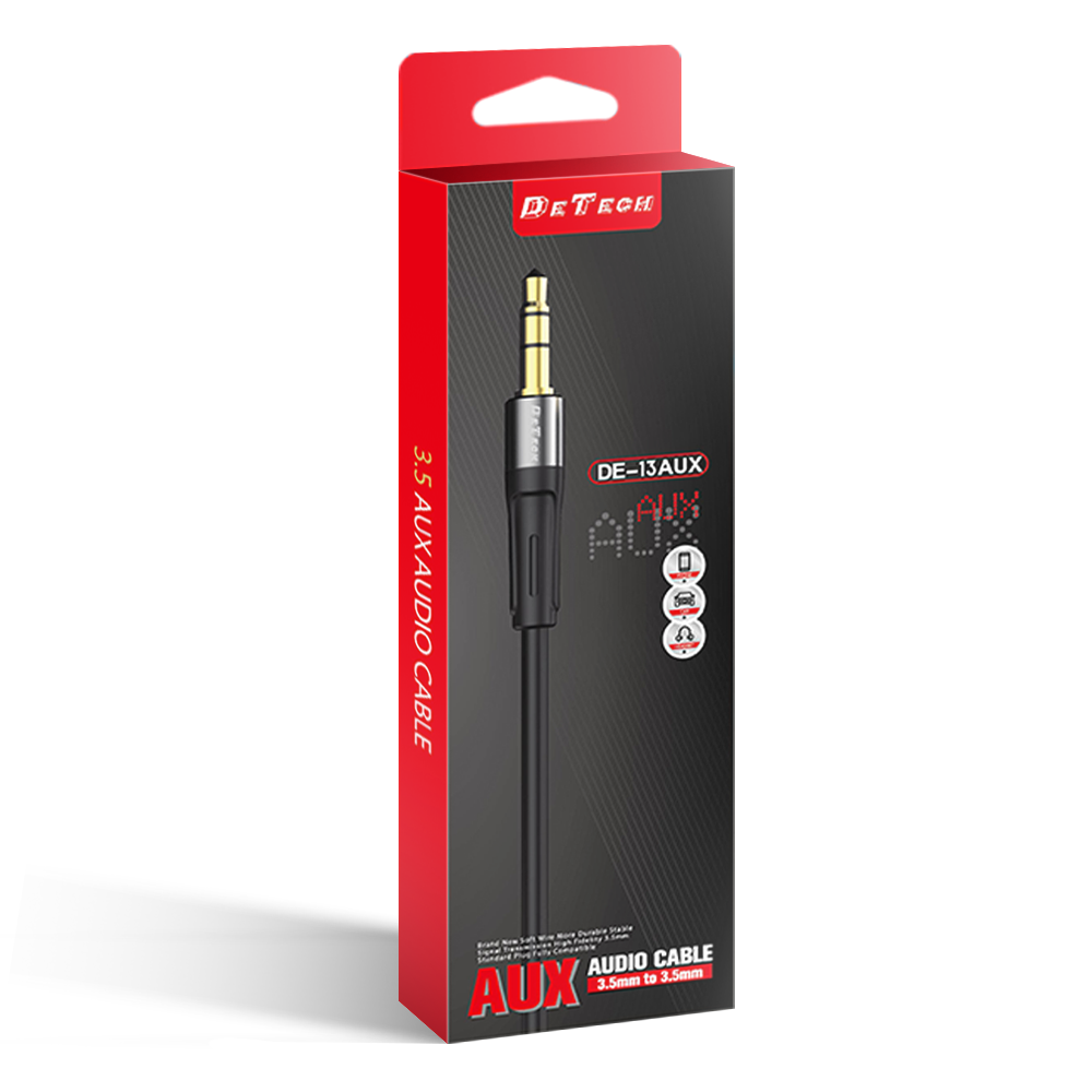 Аудио кабел DeTech DE-13AUX, 3.5mm jack, M/M, 1.0m, Black - 40279