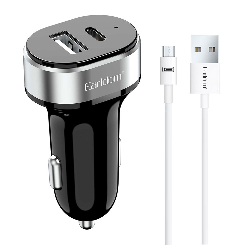 Зарядно за кола Earldom ES-CC14, 1xUSB, 1xType-C, With Micro USB cable, Black - 40241
