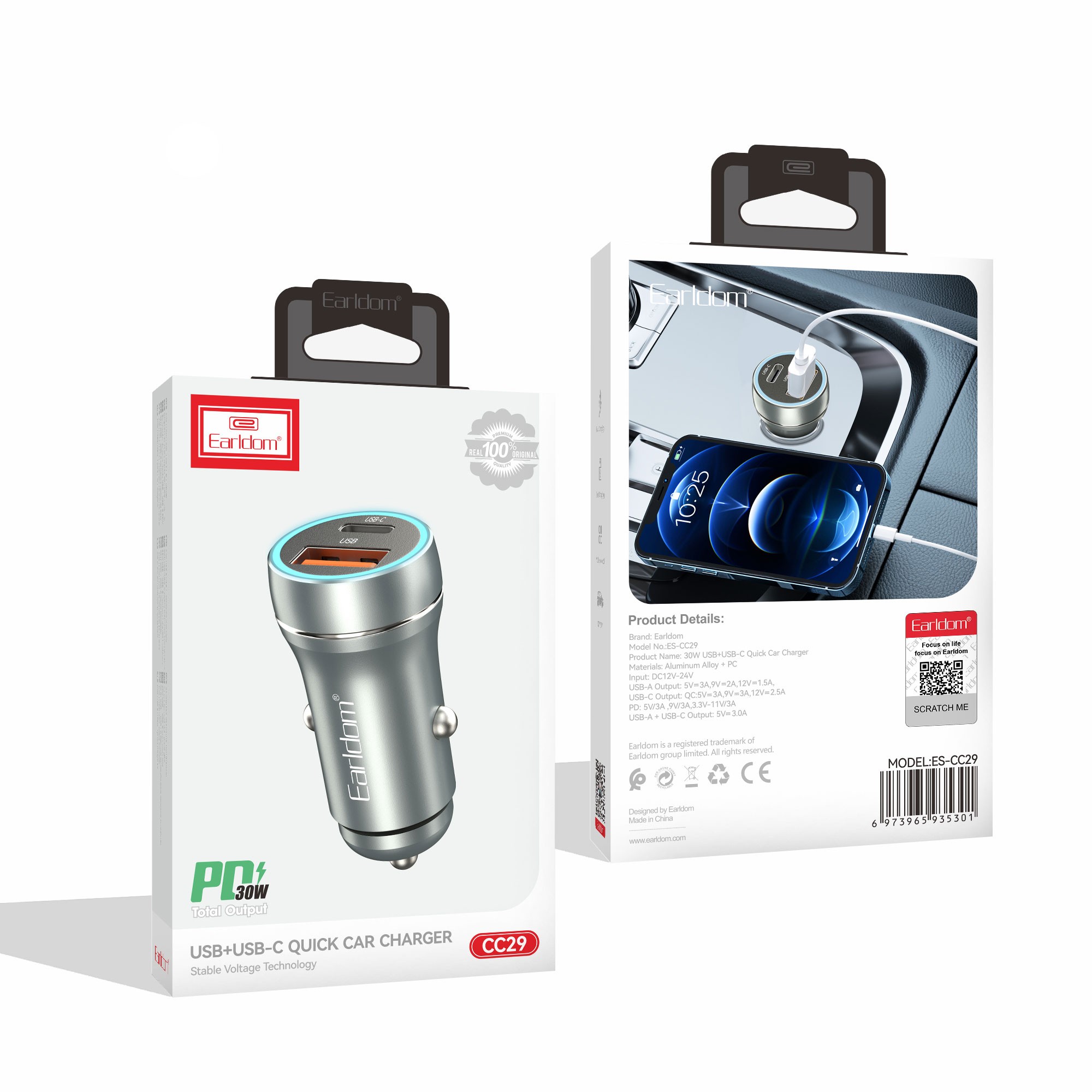 Зарядно за кола Earldom ES-CC29, 30W, USB QC3.0, PD, Silver - 40350