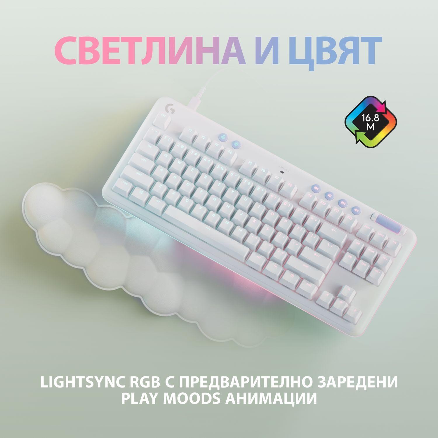 Logitech G713 е компактна жична гейминг клавиатура, която ви осигурява невероятна отзивчивост и бързина. Тя ви помага да покажете индивидуалния си гейминг стил и да се насладите на любимите си игри по вашия собствен начин. Тази клавиатура има удобна поставка за китки и регулируеми крачета, които ви гарантират, че ще използвате клавиатурата по възможно най-удобния за вас начин. Клавиатурата има атрактивна и красива подсветка, която има предварително заредени Play Mood анимации, а ако пожелаете може да зададете и свои ефекти. Може да зададете 16.8 милион програмируеми RGB цветове като използвате безплатния G HUB софтуер.
