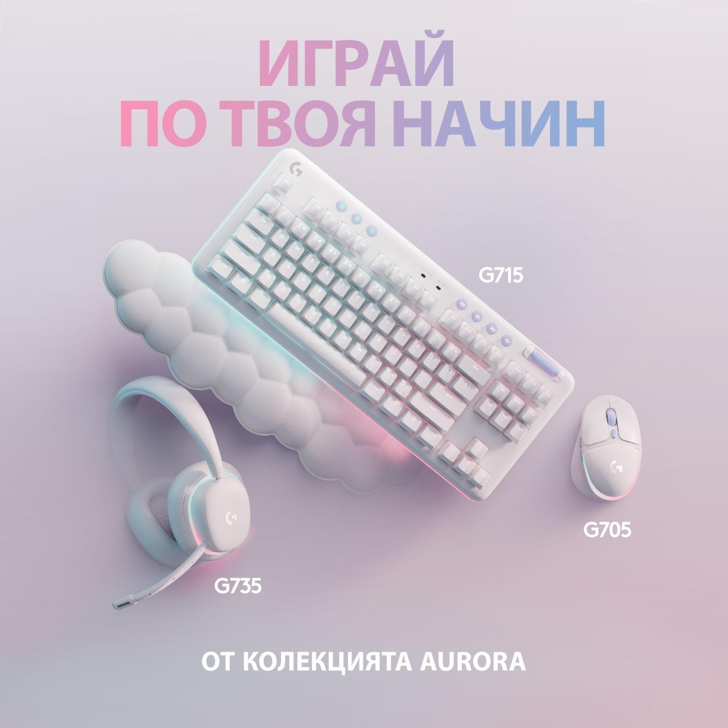 Logitech G715 е компактна безжична гейминг клавиатура, която ви осигурява невероятна отзивчивост и бързина. Тя ви помага да покажете индивидуалния си гейминг стил и да се насладите на любимите си игри по вашия собствен начин. Тази клавиатура има удобна поставка за китки и регулируеми крачета, които ви гарантират, че ще използвате клавиатурата по възможно най-удобния за вас начин. Клавиатурата има атрактивна и красива подсветка, която има предварително заредени Play Mood анимации, а ако пожелаете може да зададете и свои ефекти. Може да зададете 16.8 милион програмируеми RGB цветове като използвате безплатния G HUB софтуер.