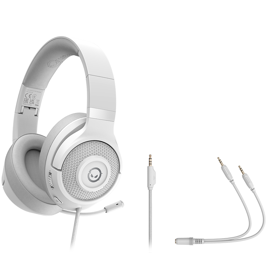 LORGAR Noah 101, Gaming headset with microphone, 3.5mm jack connection, cable length 2m, foldable design, PU leather ear pads, size: 185*195*80mm, 0.245kg, white