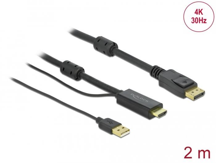 <p>• Конектори:<br />1 x HDMI-A мъжко<br />1 x USB Type-A мъжко (захранване) > 1 x DisplayPort мъжко<br />• Посока на сигнала: HDMI вход > DisplayPort изход<br />• Чипсет: STDP2600<br />• DisplayPort 1.2 и High Speed HDMI спецификация • Габарит на кабела: 28 AWG<br />• Диаметър на кабела: ок. 7,2 мм<br />• Контакти позлатени<br />• Предаване на аудио и видео сигнали<br />• Резолюция до 3840 x 2160 при 30 Hz<br />(в зависимост от системата и свързания хардуер) • Поддържа 3D (1080p @ 120 Hz)<br />• 2 x феритна сърцевина<br />• Цвят: черен<br />• Дължина вкл. конектори: 2 м</p>