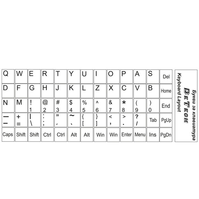 Букви за клавиатура DeTech DE-17045 за лаптопи без кирилица, с латиница, бели