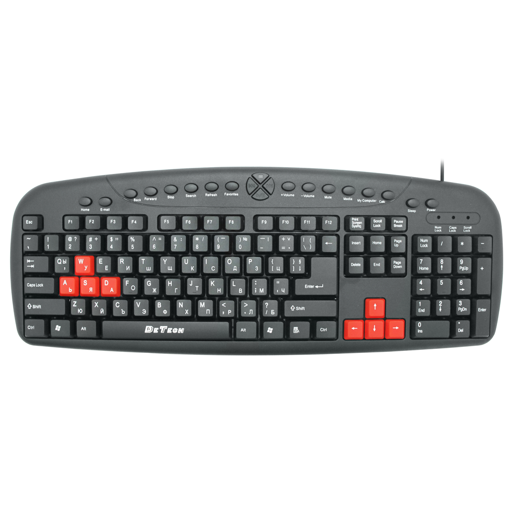 Multimedia keyboard DeTech DE6087, USB, Cyrillic, Black - 6087