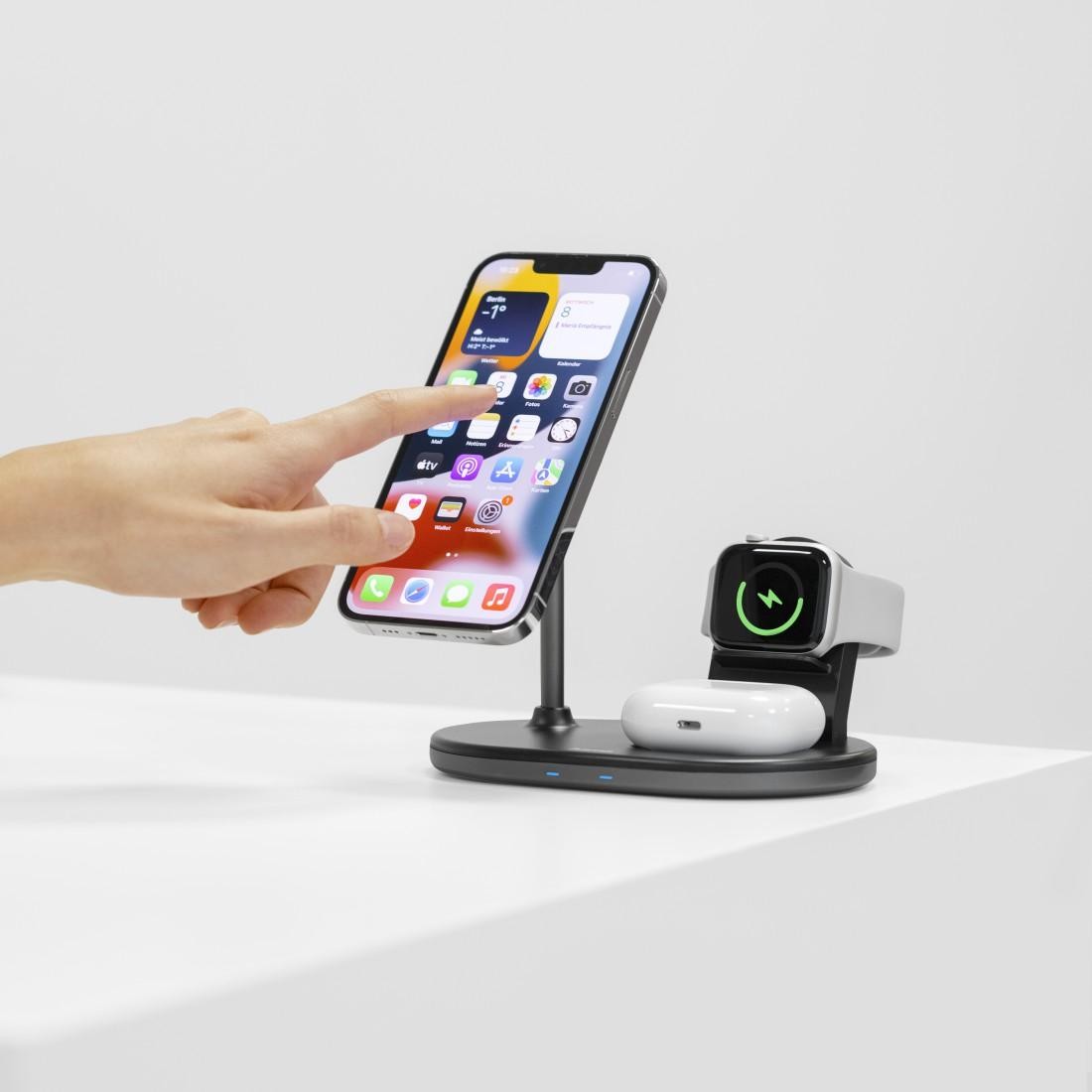 С индукционното зарядно устройство "MagCharge" можете да зареждате безжично и едновременно вашия Apple iPhone, AirPods и Apple Watch.