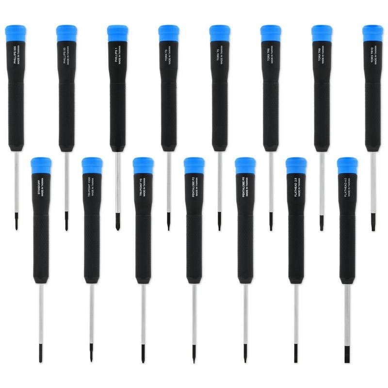 В комплекта са включени 15 различни размери от прецизни отверки, с които можете да отворите различни устройства без проблем.