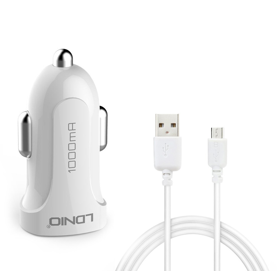 Зарядно за кола, LDNIO DL-C17, 5V/1A, Universal , 1xUSB, With Micro USB cable, White - 14377