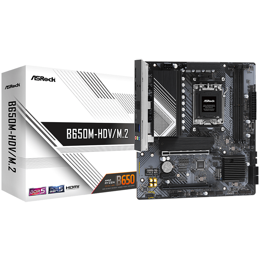 Дънната платка ASROCK MB Desktop B650M-HDV/M2 е идеална за сглобяване на мощен настолен компютър, подходящ както за гейминг, така и за професионални задачи.