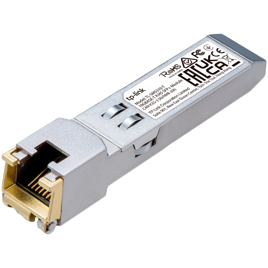 Трансивер TP-LINK 10GBASE-T RJ45 SFP+ Module представлява 10Gbps RJ45 Copper Transceiver, който е Plug and Play с SFP+ слот и поддържа DDM (Temperature and Voltage), с разстояние до 30 метра (Cat6a или по-висока категория).