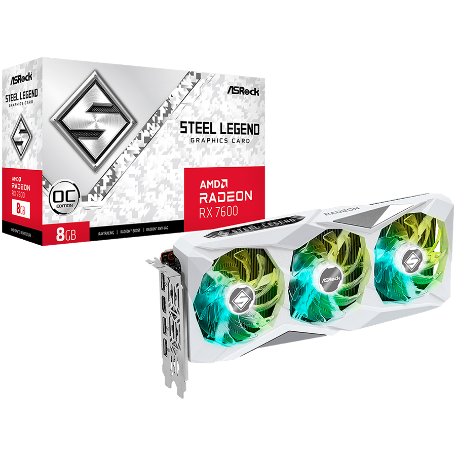 Освен висококачествено изображение и бързи скорости, Видео карта ASROCK Video Card AMD Radeon RX-7600 Steel Legend 8GB ви осигурява безупречен гейминг и графичен дизайн за напреднали потребители и професионалисти.